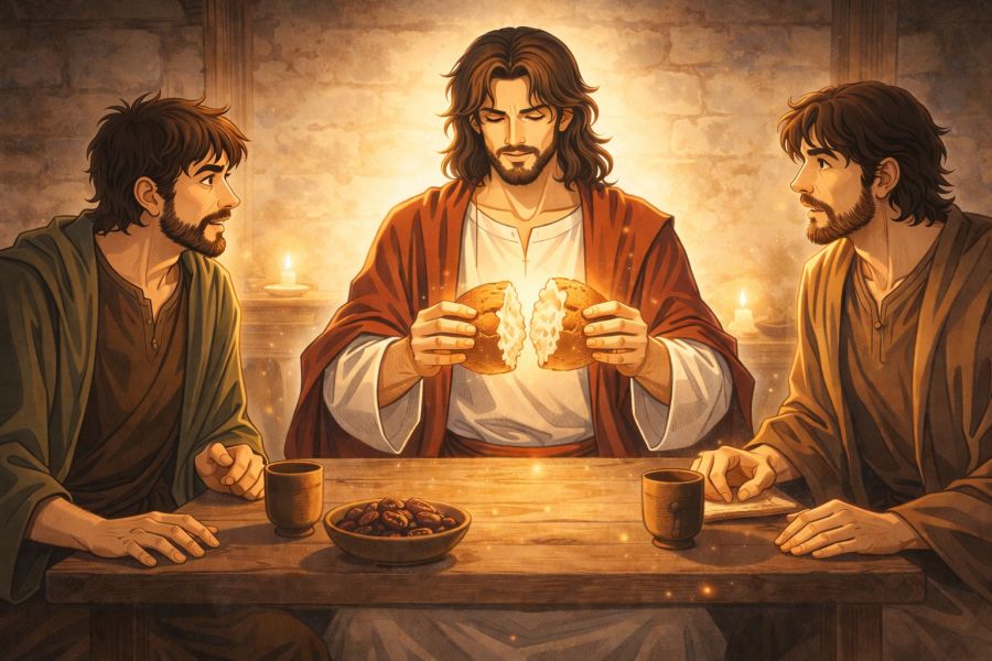 Ed ecco, in quello stesso giorno [il primo della settimana] due dei [discepoli] erano in cammino per un villaggio di nome Èmmaus, distante circa undici chilometri da Gerusalemme, e con- versavano tra loro di tutto quello che era accaduto. Mentre conversavano e discutevano insieme, Gesù in persona si avvicinò e camminava con loro…